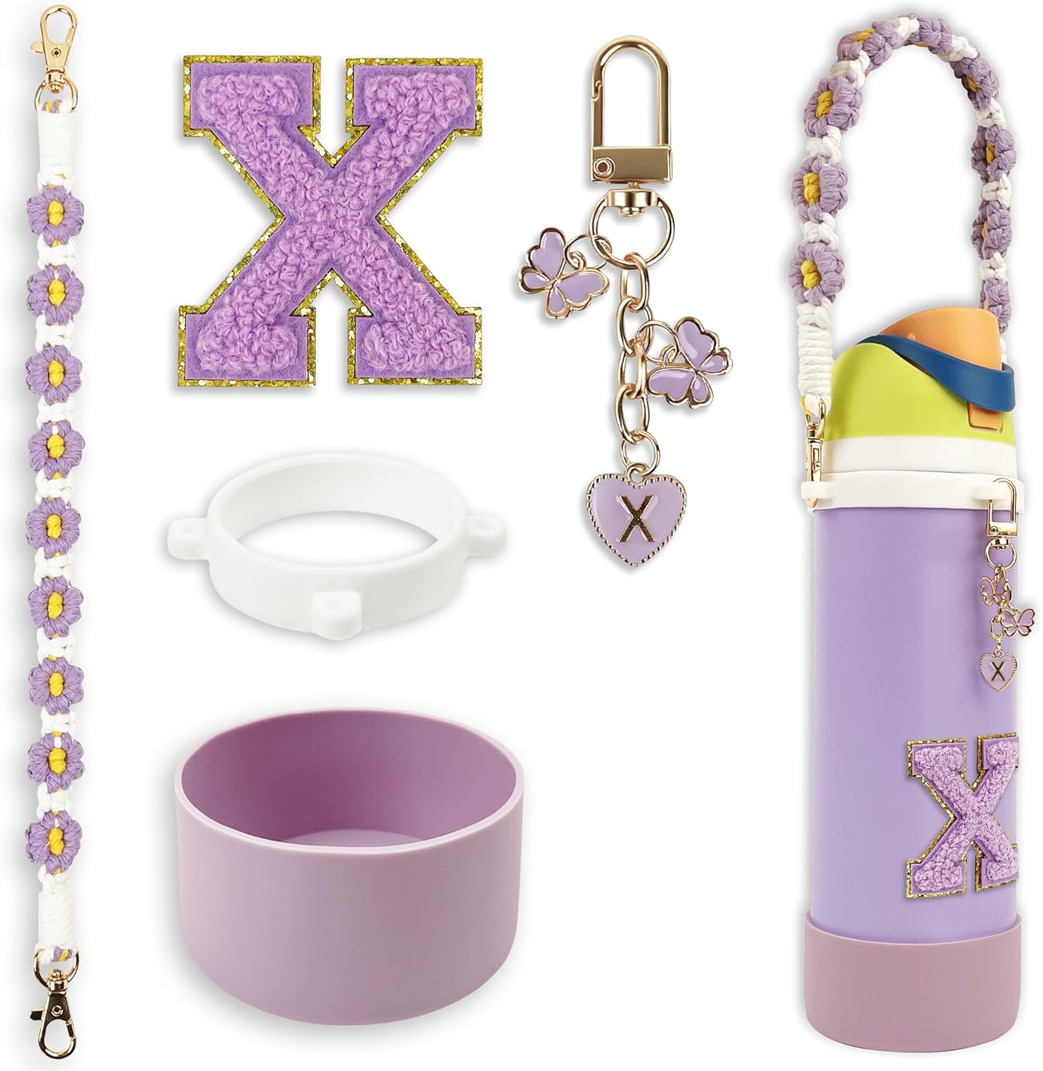 • Compatibility: This set includes a perfectly fitting silicone boot for Owala FreeSip 24 oz and Owala Tumbler 24 oz, along with a handle strap, letter stickers, and a letter keychain