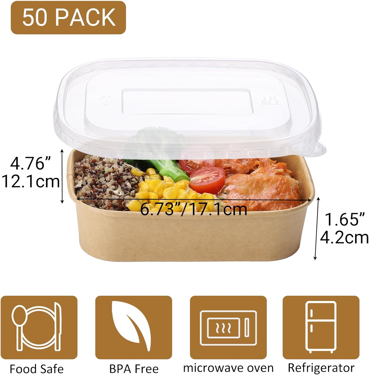 - Package Contains: 50 count 17oz Rectangle kraft paper bowls with 50 count clear lids.