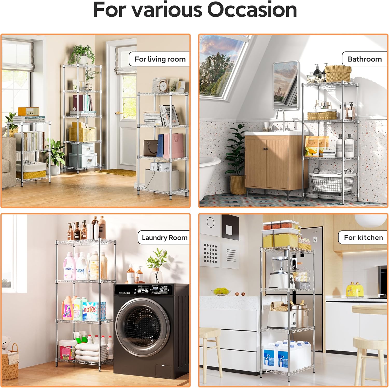 4 Tiers Shelf Metal Storage Shelves Wire Rack Closet Organizers with Wheel for Garage Kitchen Bathroom Laundry Chrome 11.8" D x 17.7" W x 41.9" H