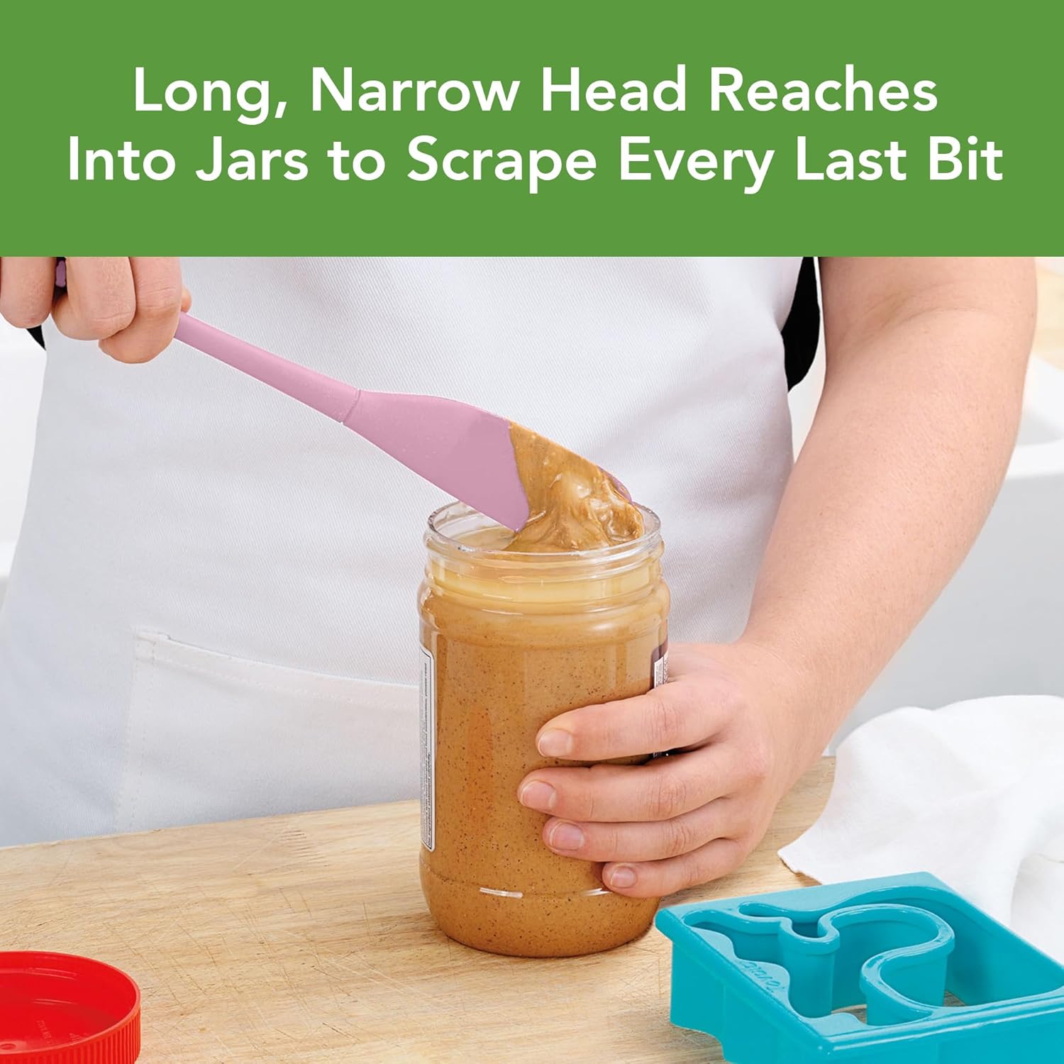 - Clean Out Jars: A narrow, angled head Flex-Core Jar Scraper, reaches into small jars and corners to scoop out every bit. The curved side is perfect for scooping while the flat side is ideal for spreading.