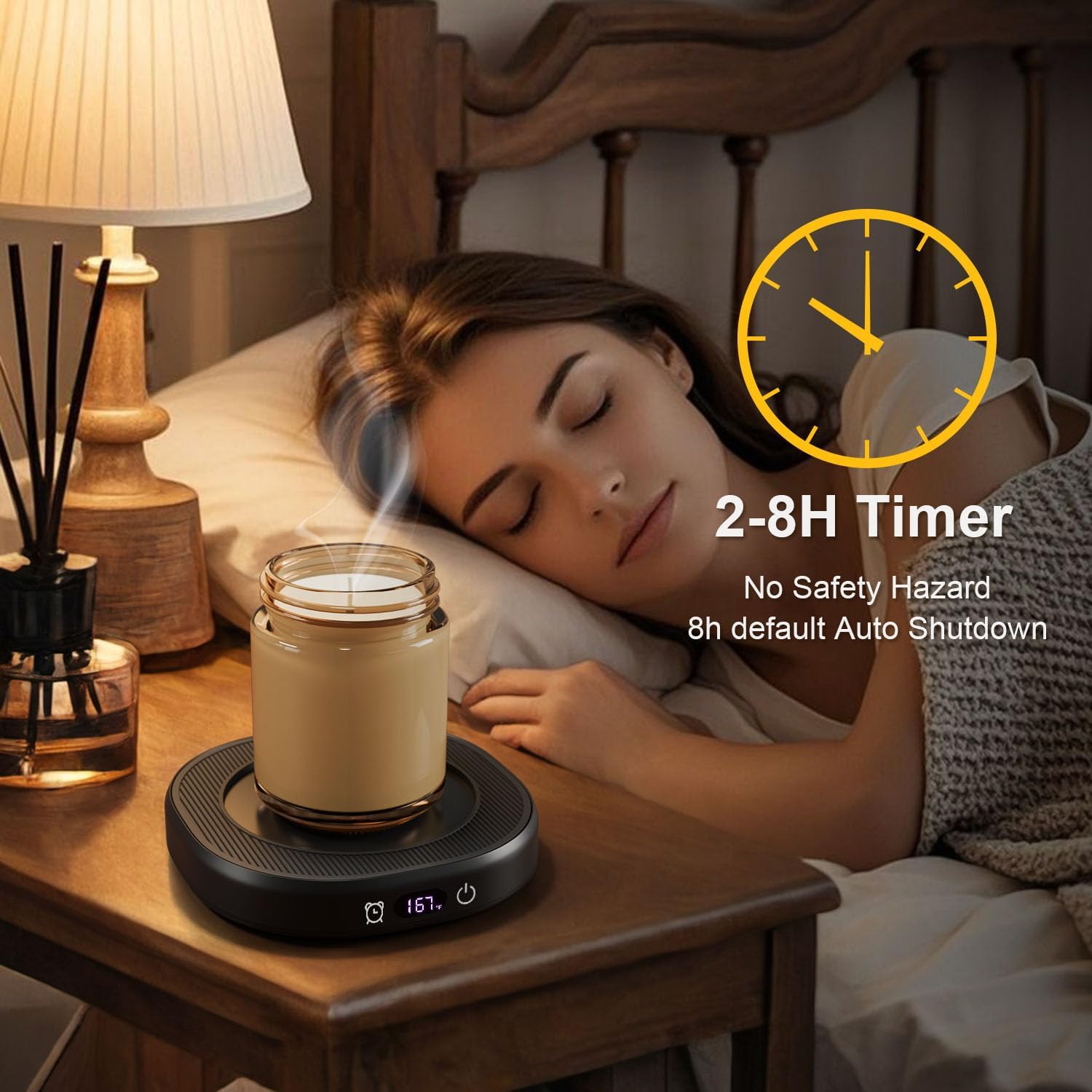 - Smart Auto-Off Safety System: Choose preset timers (2H/4H/6H/8H) or use default 8-hour shutoff for this coffee warmer. Our energy-efficient desk warmer prevents overheating while you work - perfect for offices and home offices. Never worry about leaving your candle warmer on overnight