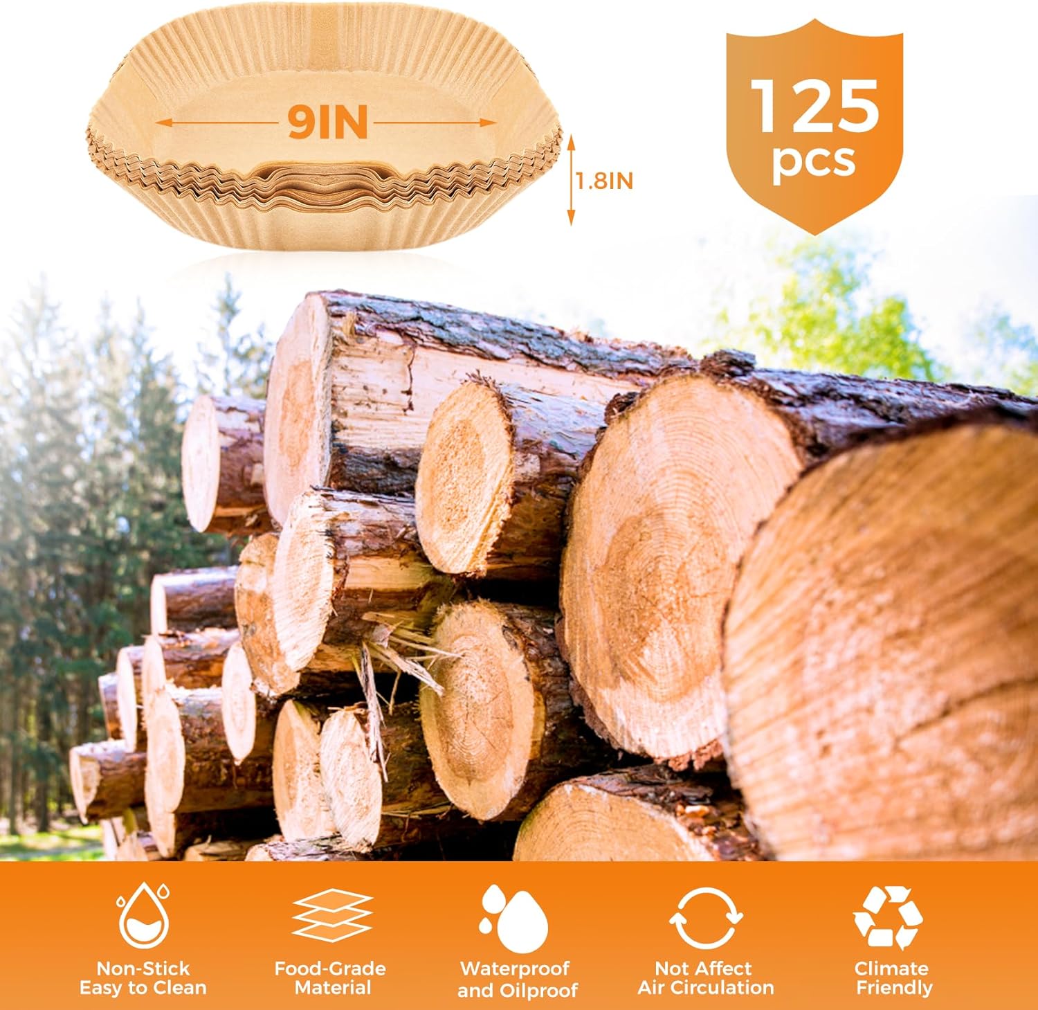 Vailnd Air Fryer Disposable Paper Liners 9inch Square, 125PCS Non-Stick Food Grade Air Fryer Parchment Paper, Oil Resistant & Waterproof Baking Liner for 8-12 QT Oven