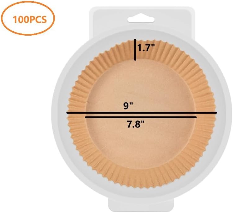 Disposable Air Fryer Paper Liners Round, 100 pcs Non-stick Parchment Greaseproof, Waterproof, Food Grade Baking Paper for Microwave, Oven, Steamer,9 inch Air Fryer Liner