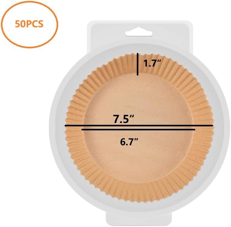 • Multiple Sizes and Shapes, Suitable for Various Air Fryers:Available in 7.5-inch round, 9-inch round, 10-inch round, and corresponding 50pcs/100pcs packaging options. It perfectly fits most round air fryers on the market (including 3-5QT small air fryers, 6-8QT medium air fryers). It is also compatible with various cooking equipment such as microwaves and ovens, meeting the diverse needs of daily family baking, roasting meat, and reheating leftovers