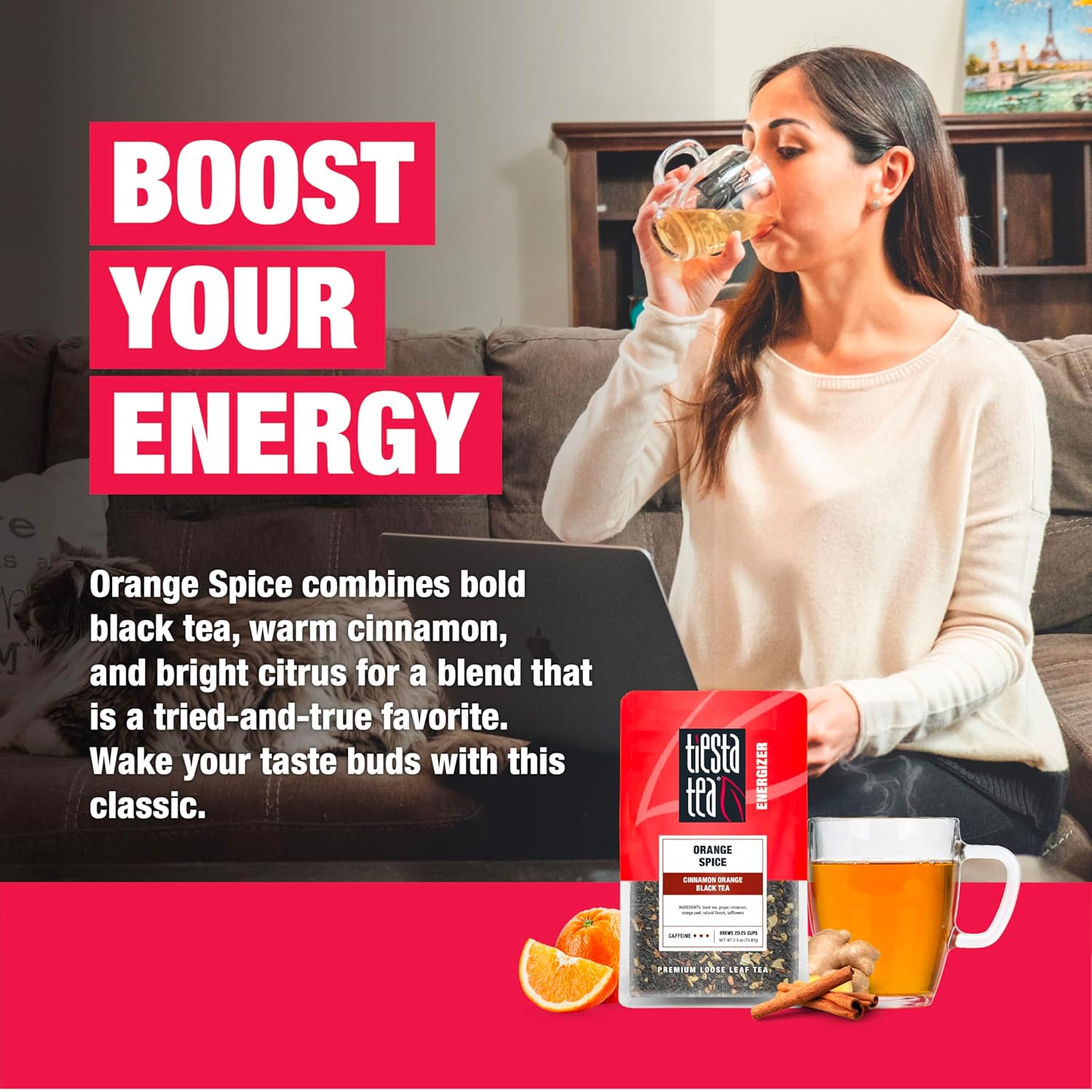 Tiesta Tea - Orange Spice Tea, Loose Leaf, Cinnamon Orange Black Tea, Premium High Caffeine Tea Blend, Make Hot or Iced & Up to 25 Cups, 2.5 oz Resealable Pouch