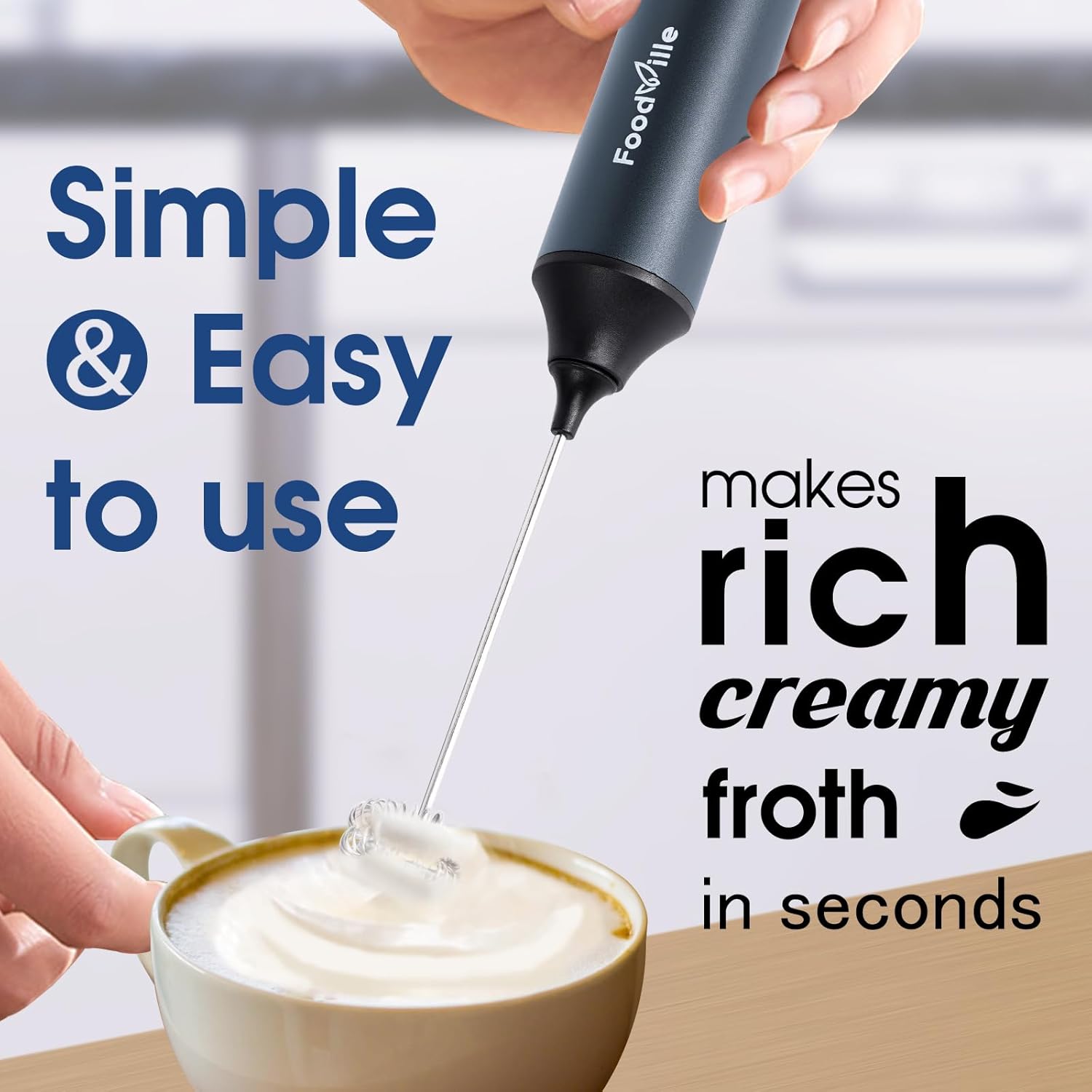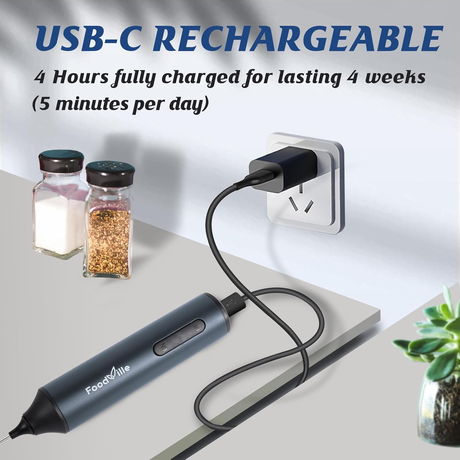 - Rechargeable Design: The milk frother comes with a USB Type C port for quick charging and it works for up to 1 month in everyday use on a full charge.
