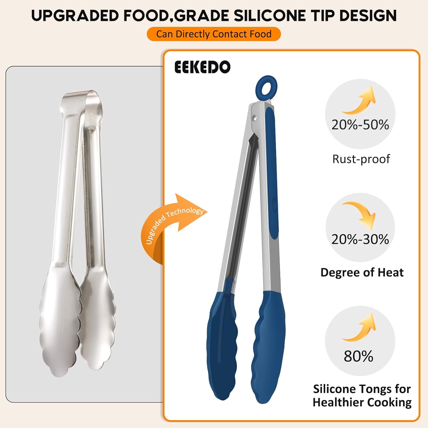 - Premium Materials: EEKEDO kitchen tongs are constructed with food-grade stainless steel and silicone. Carbon free.Thickened stainless steel makes it stronger and more durable.It is convenient and safe to your cooking.