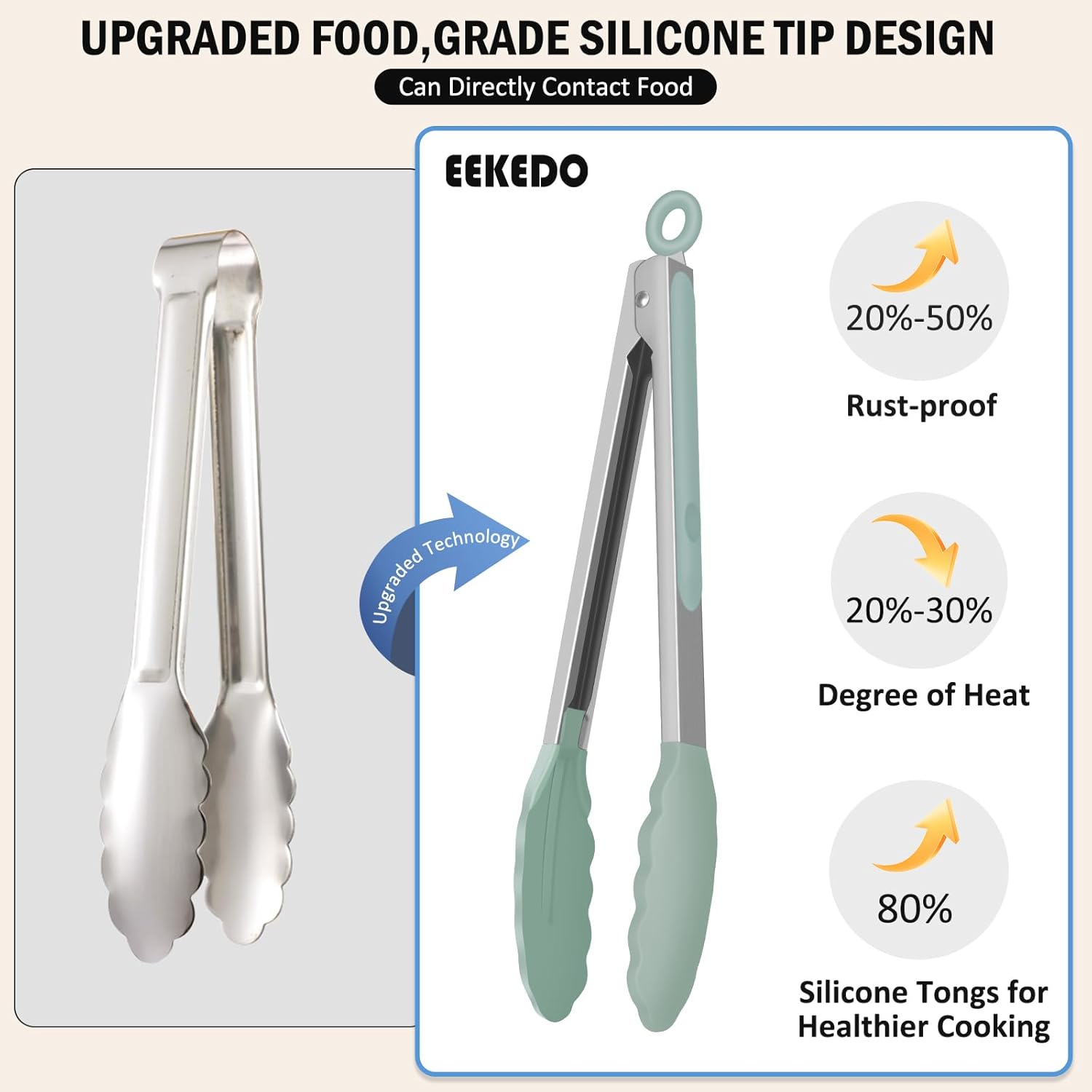 - Premium Materials: EEKEDO kitchen tongs are constructed with food-grade stainless steel and silicone. Carbon free.Thickened stainless steel makes it stronger and more durable.It is convenient and safe to your cooking.