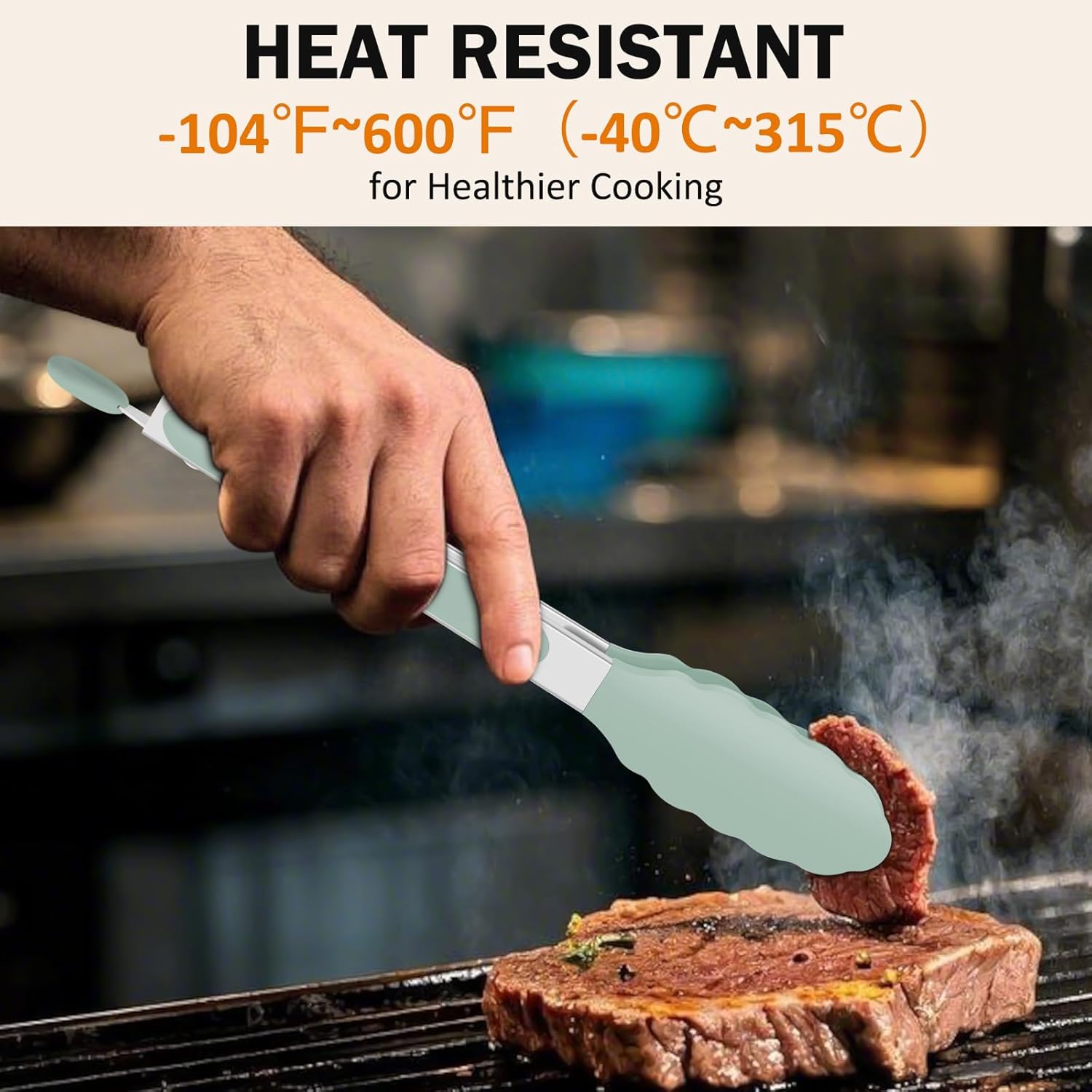 - 600ºF High Heat-Resistant: The silicone tongs feature BPA free silicone tip that will not scratch your nonstick cookware. Scalloped edges securely hold food. EEKEDO Tongs are great for frying, grilling, stirring, and serving. Non-stick surface easy to rinse, dishwasher safe.