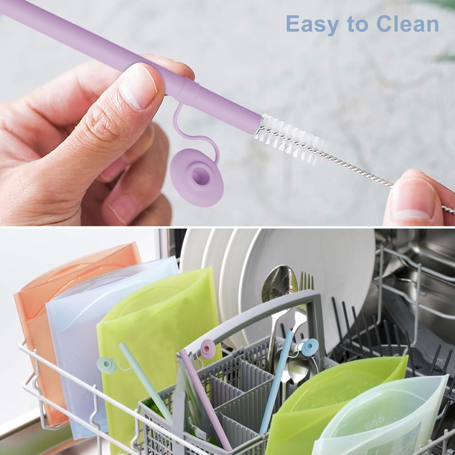 - Reusable Silicone Straws: Made from high-quality silicone, These straws are reusable and durable, It is without any odors or tastes. They're easy to clean and hand washable and dishwasher safe.