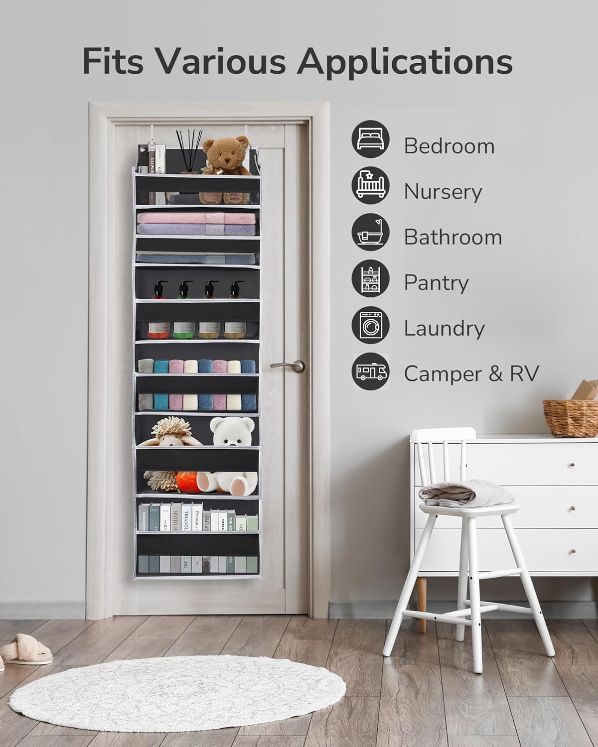 ULG Over The Door Organizer with 6 Large Pockets 12 Side Pockets, 50lbs Weight Capacity Door Hanging Organizer for Bedroom, Bathroom Black