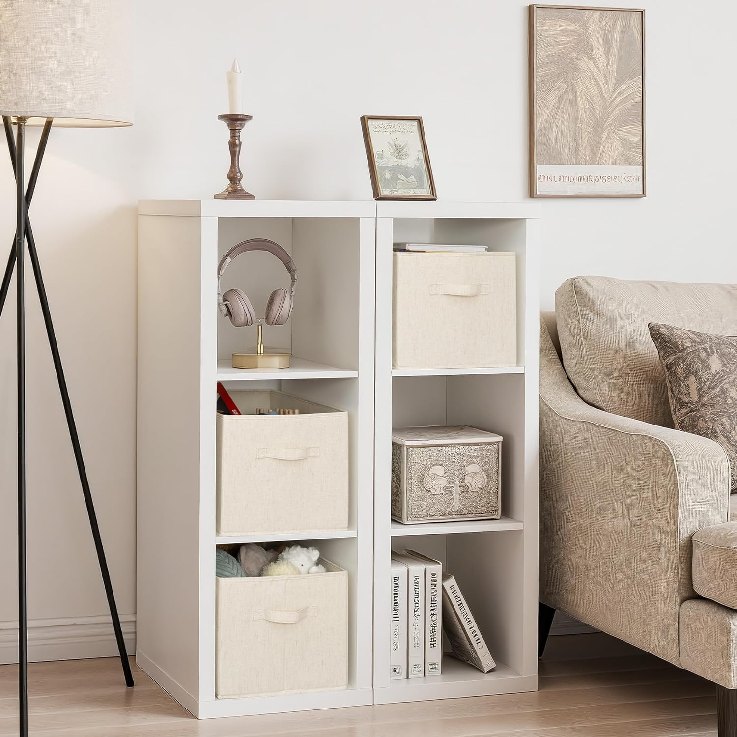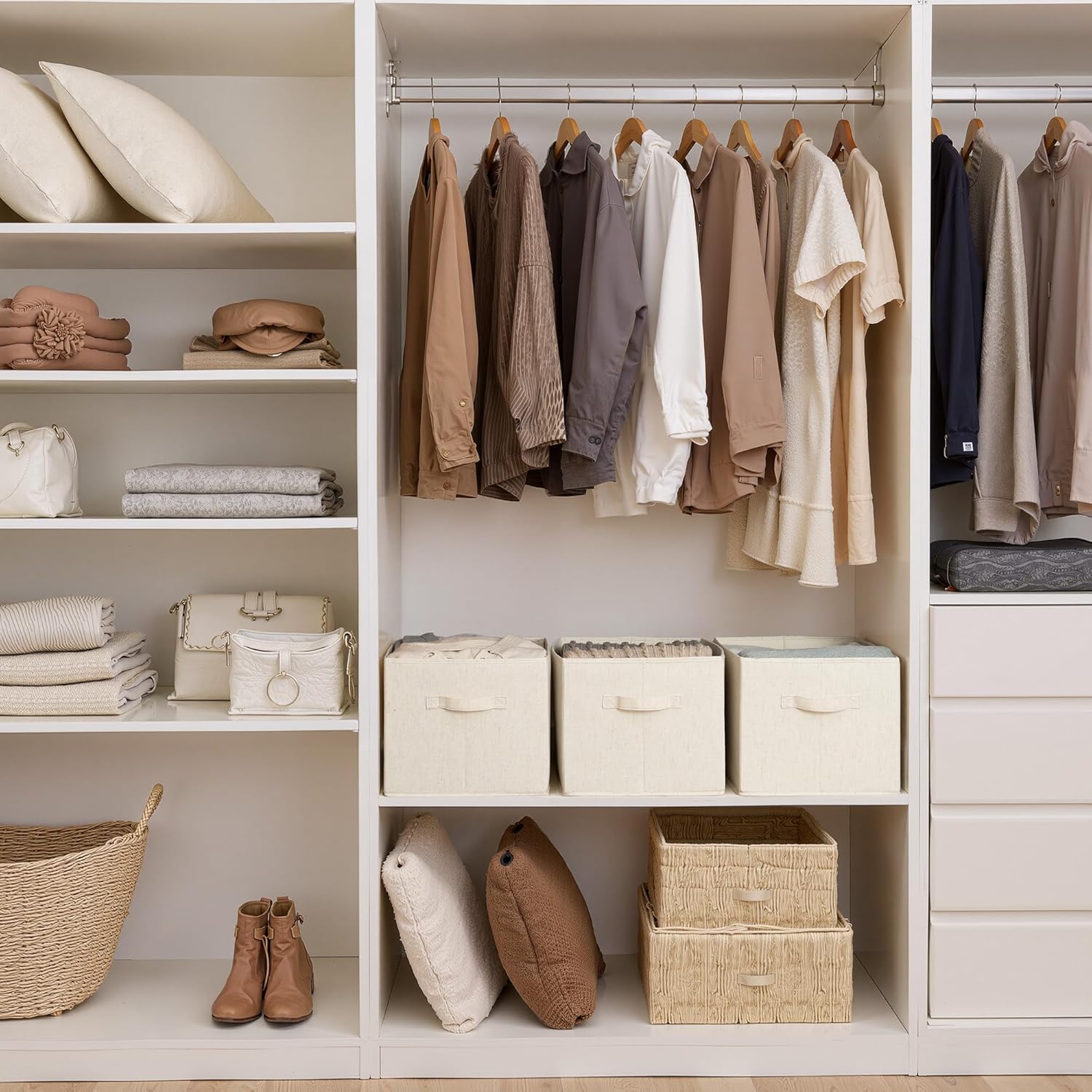StorageWorks Storage Baskets for Shelves, Foldable Fabric Closet Storage Bins with Handles, Fabric Storage Bins Clothes Organizer, Beige(Cotton-linen), 3-Pack, Extra Large