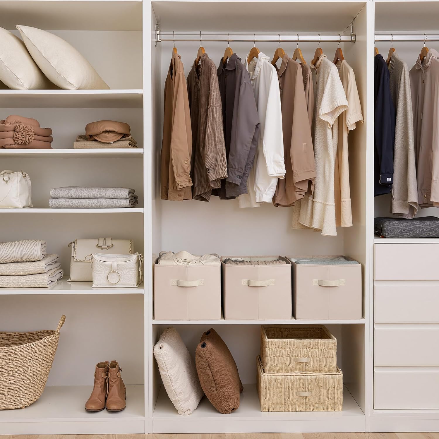 StorageWorks Storage Baskets for Shelves, Foldable Fabric Closet Storage Bins with Handles, Fabric Storage Bins Clothes Organizer, Light Brown, 3-Pack, Extra Large