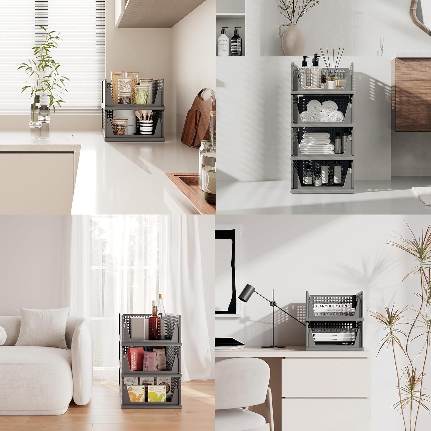 - 【Assembly Easily & Stackable】: Easy to set up, follow the steps in pictures. Adjust to your own liking by stacking the perfect number to fit your own space. Set of 4 wardrobe clothes organizer can be stackable which make home space organized, max the use of vertical space. You can stack multi-layer wardrobe storage organizer according to your needs freely. Dimensions of each when set up: 17" x 12.5" x 6.8" (L x W x H).