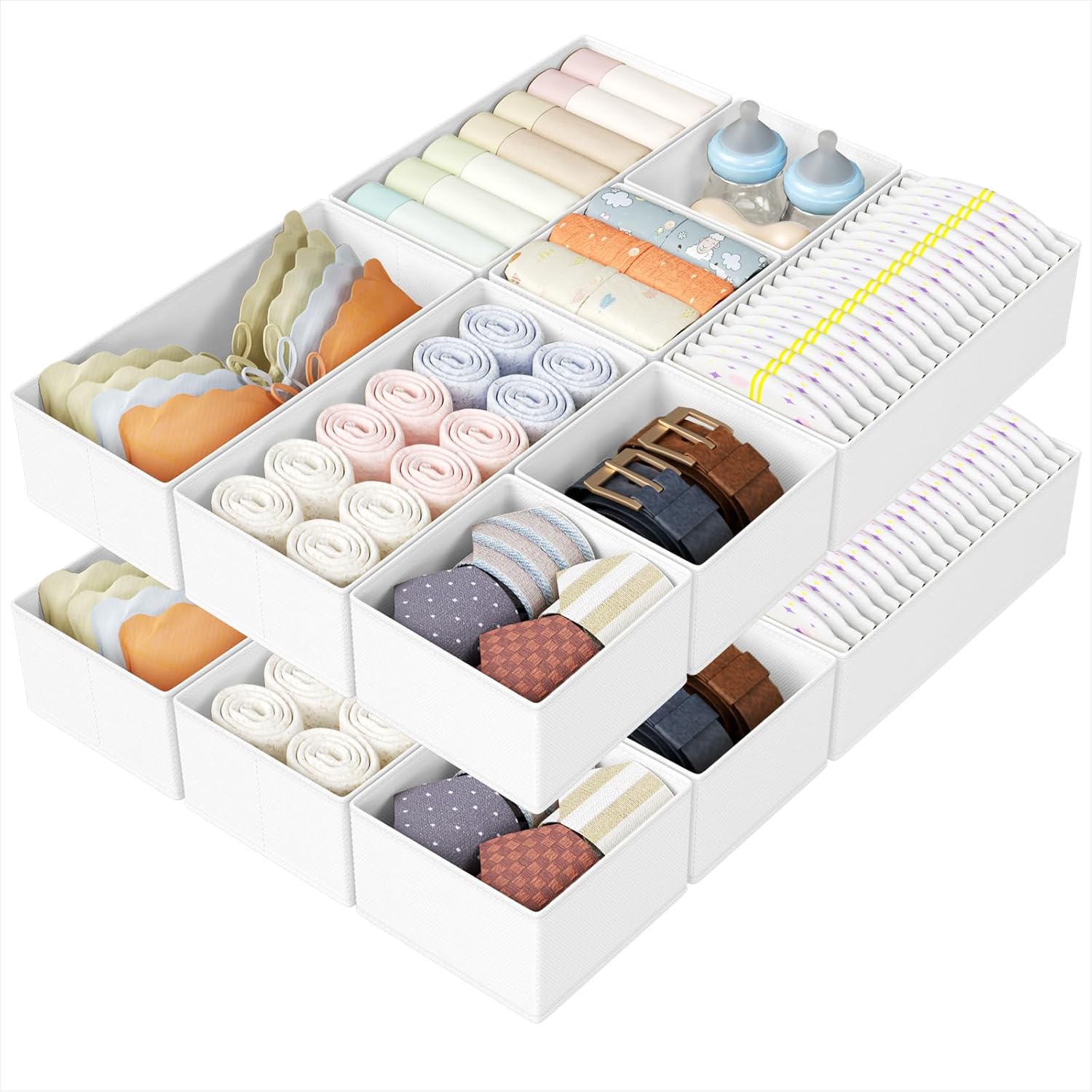 - [Multi-Size Organizer] The dresser organizers and storage choose 2 different sizes to match, you can store a variety of items, greatly improve your daily use. Medium underwear storage is 30*15*9cm (11.8*5.9*3.54") and small organizer drawers is 15*15*9cm (5.9*5.9*3.54")