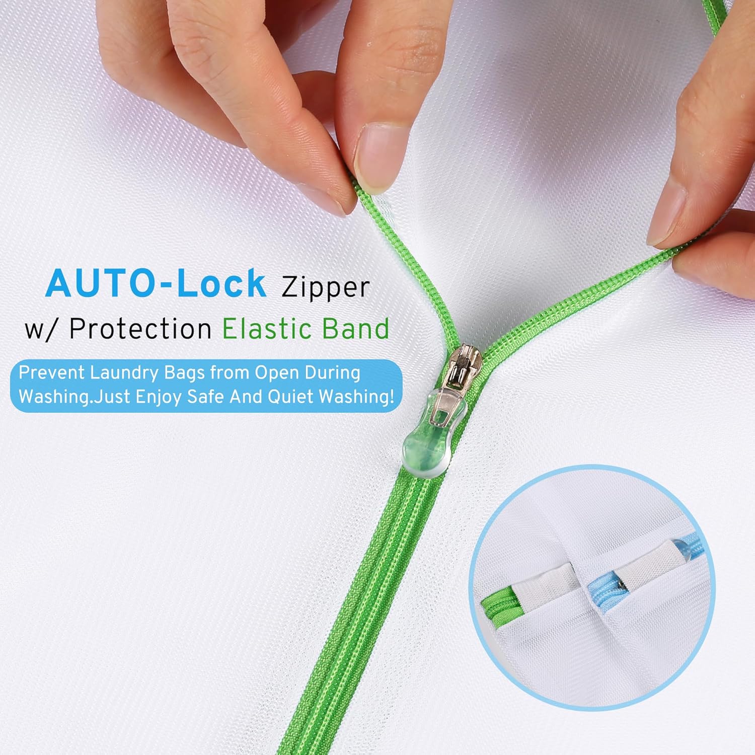 • Superior Zipper : Our laundry wash bags feature a premium zipper with AUTO-Lock and an extra protective elastic band, ensuring the contents remain securely enclosed throughout the washing and drying cycle. You’ll have a quiet laundry experience
