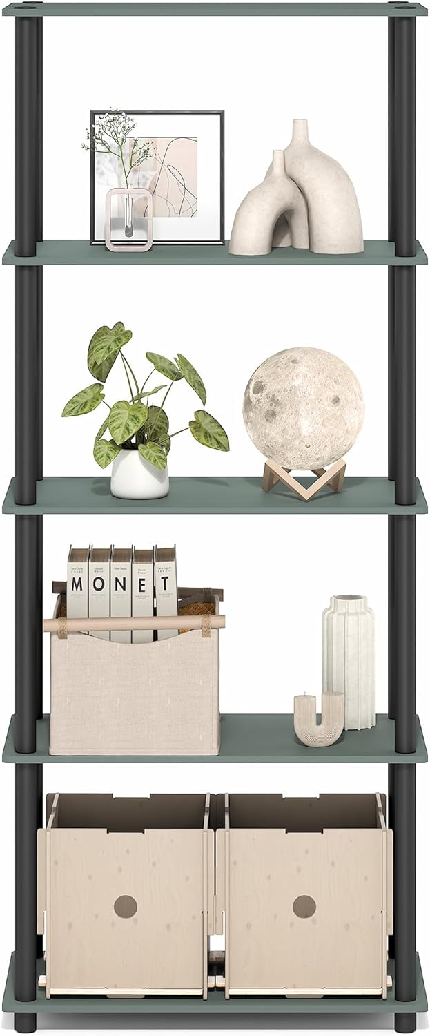 Furinno Turn-N-Tube Storage Shelves, 5-Tier Book Shelf, Corner Shelf, Toolless Open Shelves, for Organization and Storage, Living Room, Garage, Home Office, Sage Green