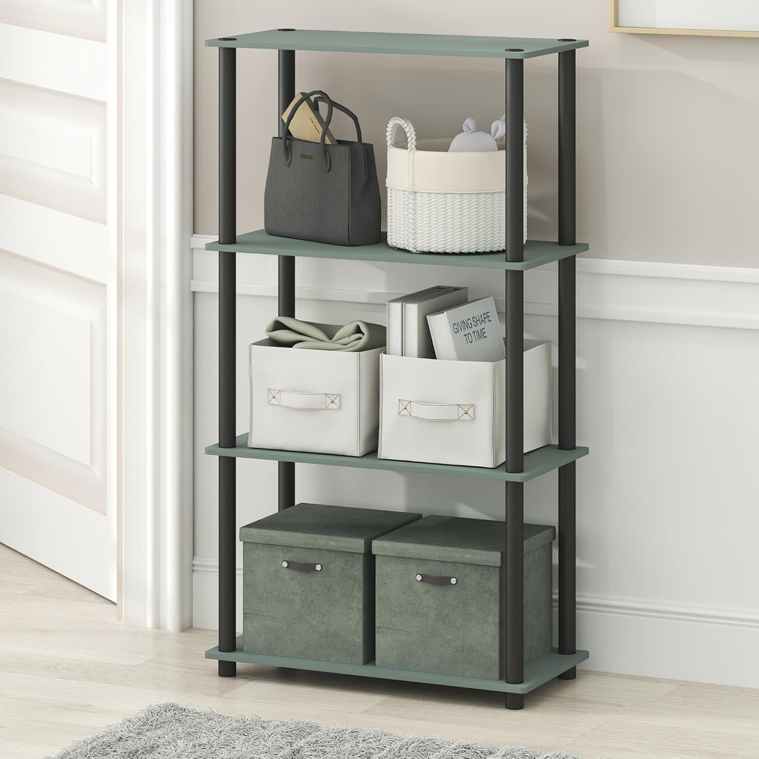 Furinno Turn-N-Tube Storage Shelves, 4-Tier Toolless Book Shelf, Corner Shelf, Toolless Open Shelves, for Organization and Storage, Living Room, Garage, Home Office, Sage Green
