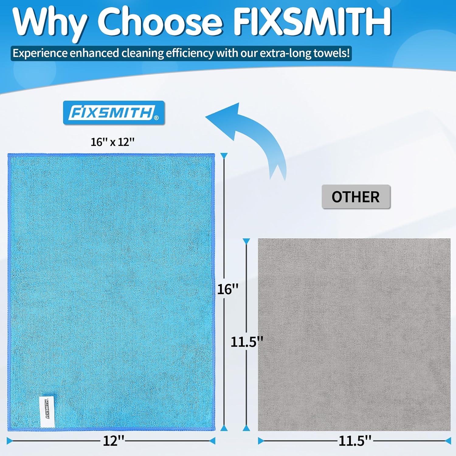 FIXSMITH Blue Microfiber Cleaning Cloth -Pack of 8, Highly Absorbent Cleaning Rags, 16"X12" All Purpose Cleaning Towels for Housekeeping, Kitchen, Car, Lint Free and Reusable Microfiber Towels