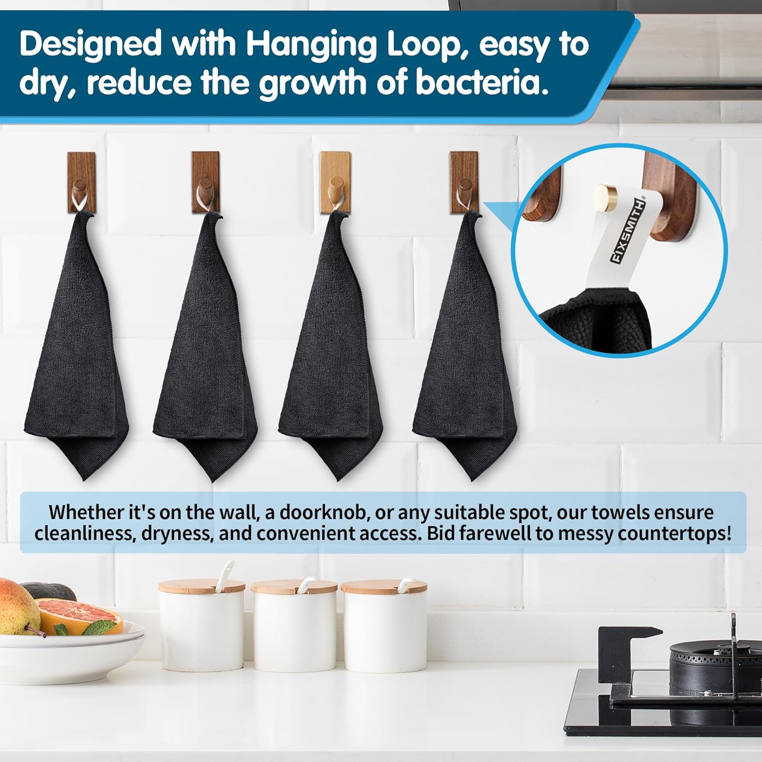 FIXSMITH Black Microfiber Cleaning Cloth -Pack of 8, Highly Absorbent Cleaning Rags, 16"X12" All Purpose Cleaning Towels for Housekeeping, Kitchen, Car, Lint Free and Reusable Microfiber Towels