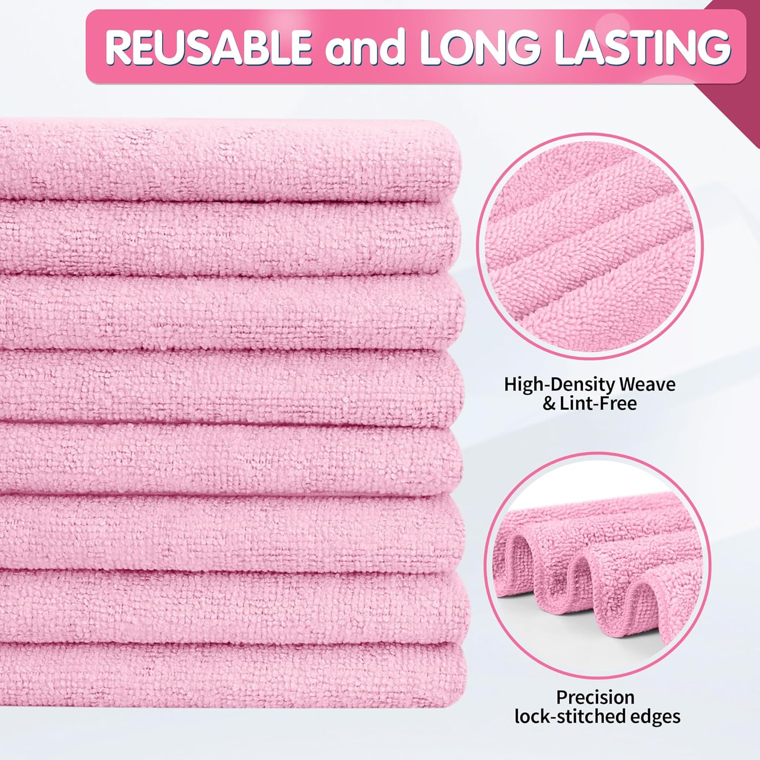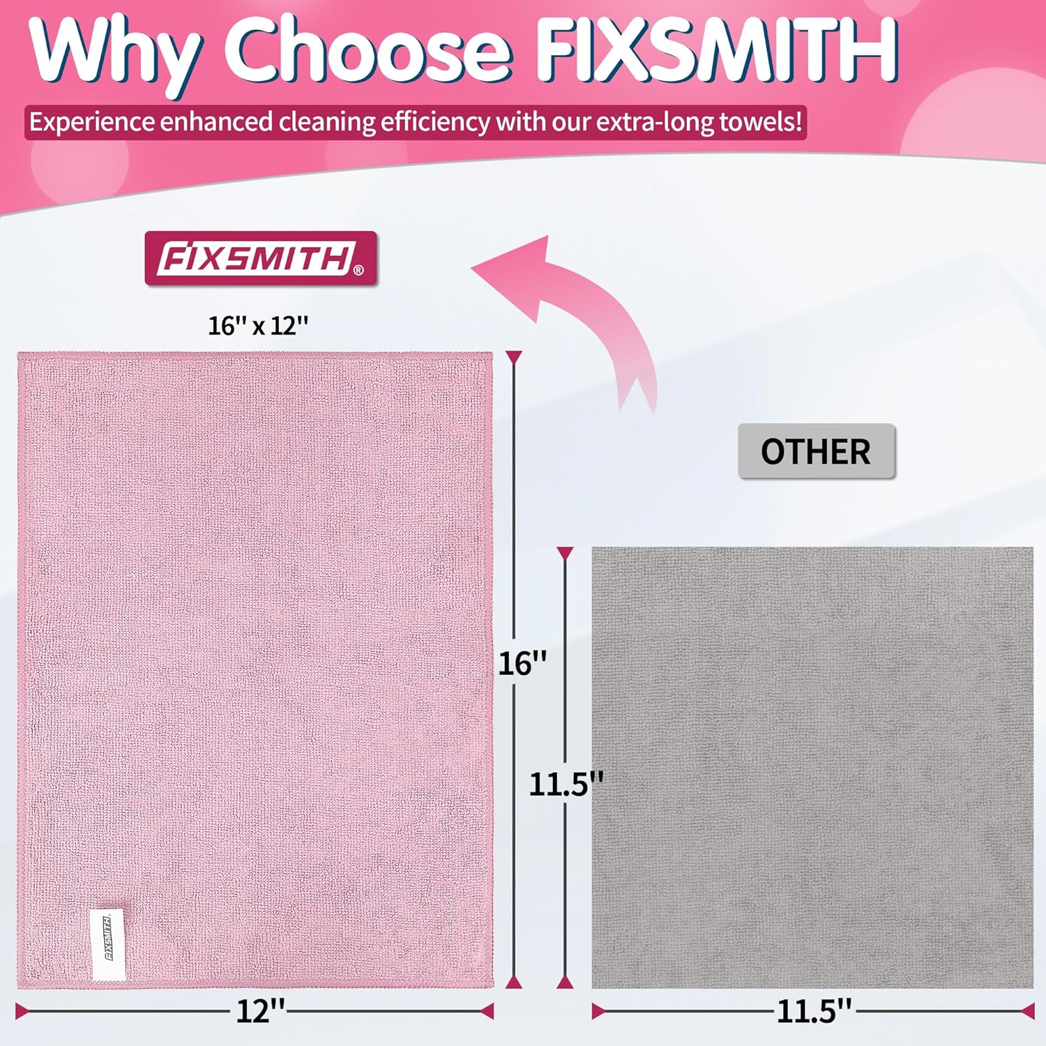 FIXSMITH Pink Microfiber Cleaning Cloth -Pack of 8, Highly Absorbent Cleaning Rags, 16"X12" All Purpose Cleaning Towels for Housekeeping, Kitchen, Car, Lint Free and Reusable Microfiber Towels