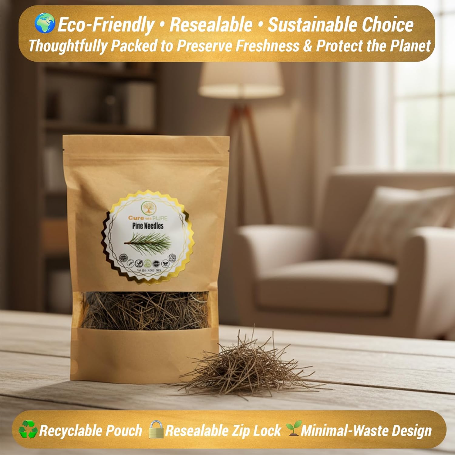 Cure Wid Pure Pine Needle Tea 3.5 Oz – 50 Cups Pine Tea – Wild Harvested from Pakistan in Eco-Friendly Resealable Pouch | Aromatic & Soothing Caffeine-Free Herbal Tea, Antioxidant & Immune Support