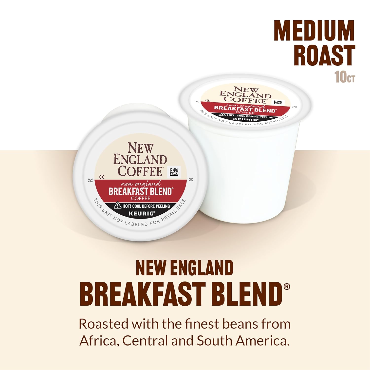 New England Coffee Breakfast Blend Medium Roast Single Serve Pods, 10ct Box (Pack of 1)
